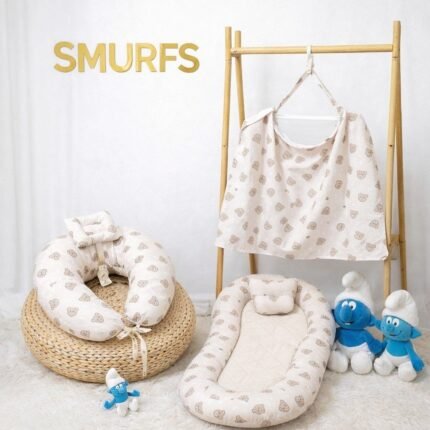 سيت 3 قطع ناموسية جامبو و مخدة الرضاعة و ساتر الرضاعة – السنافر