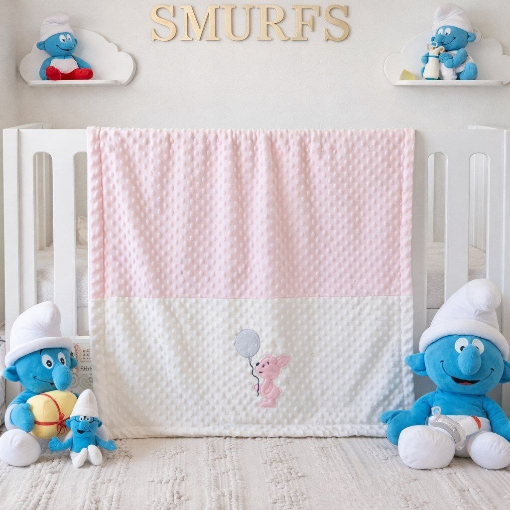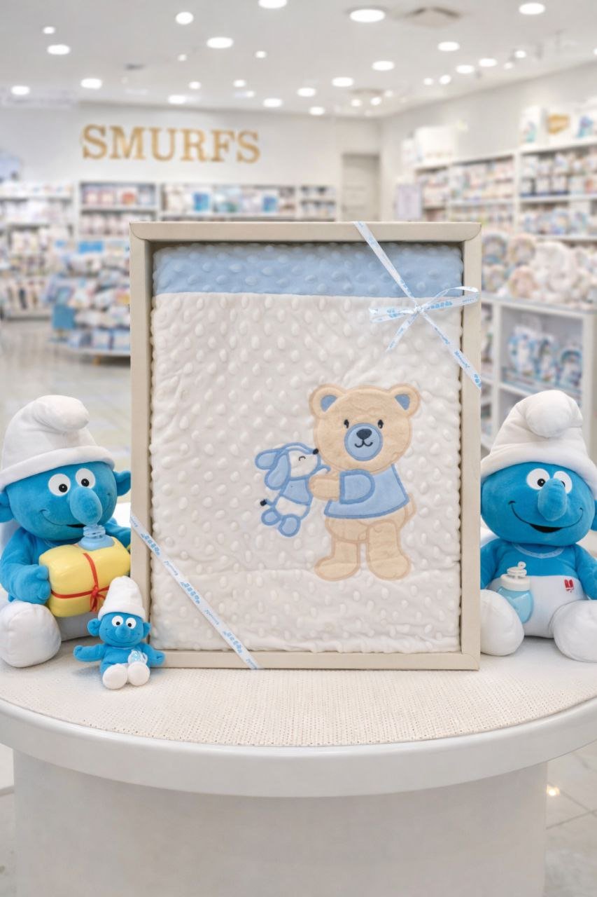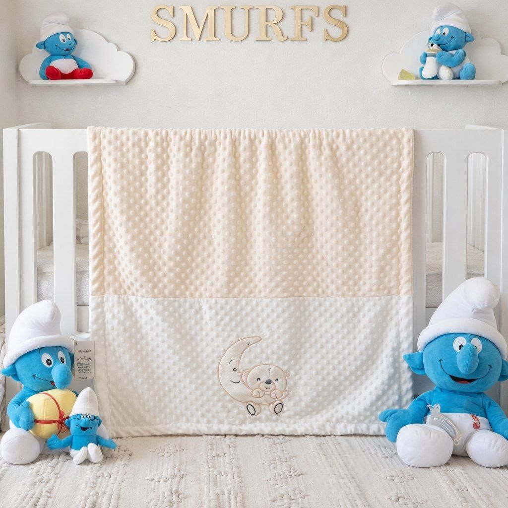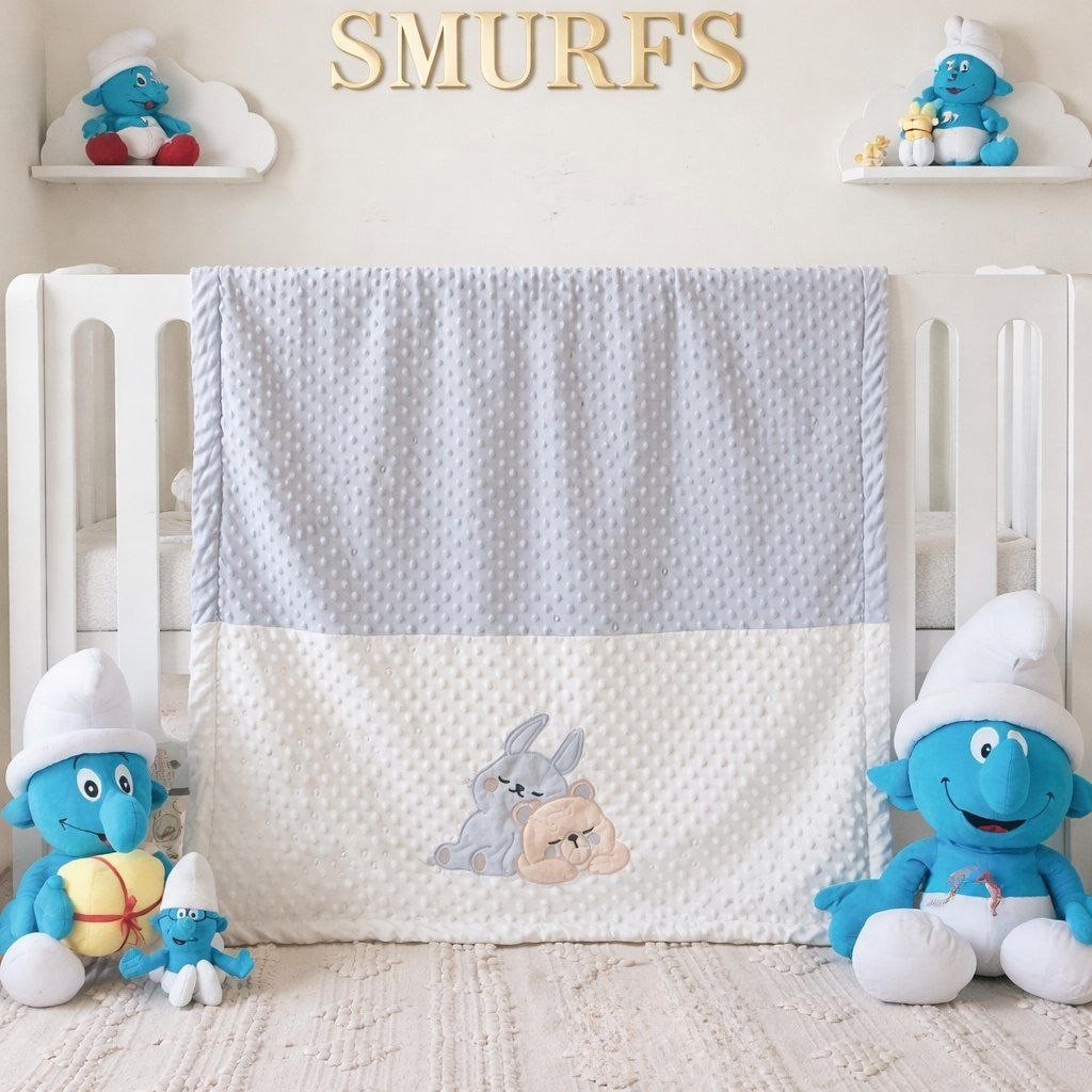 • بطانية السنافر حفر مطبوع طبقتين سادة تركي 90*120.