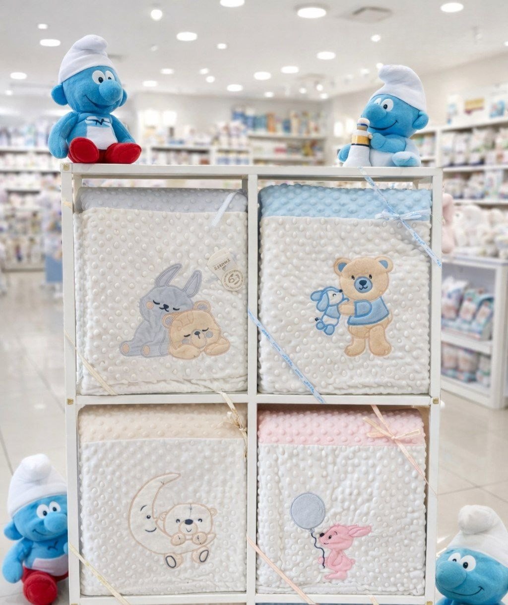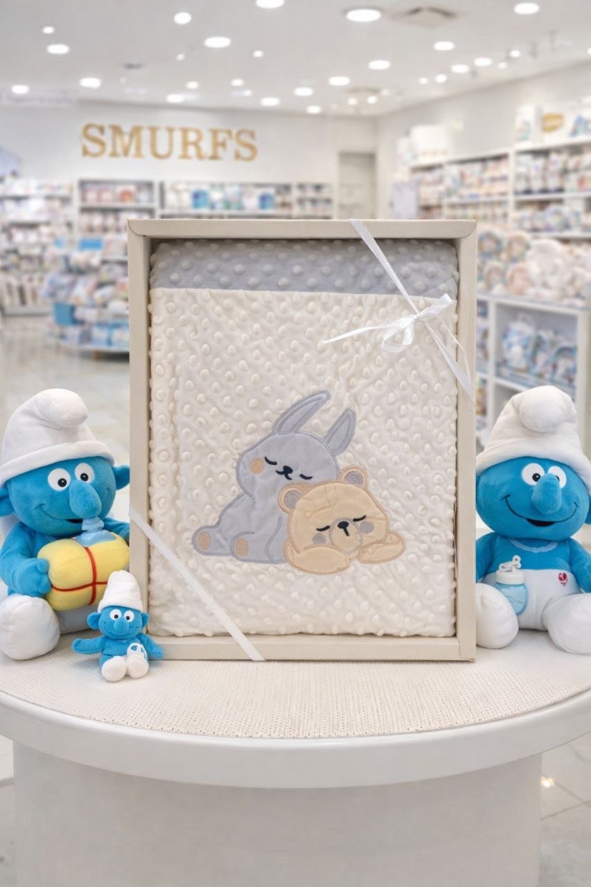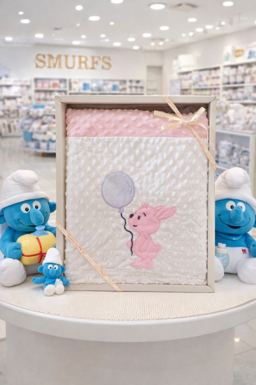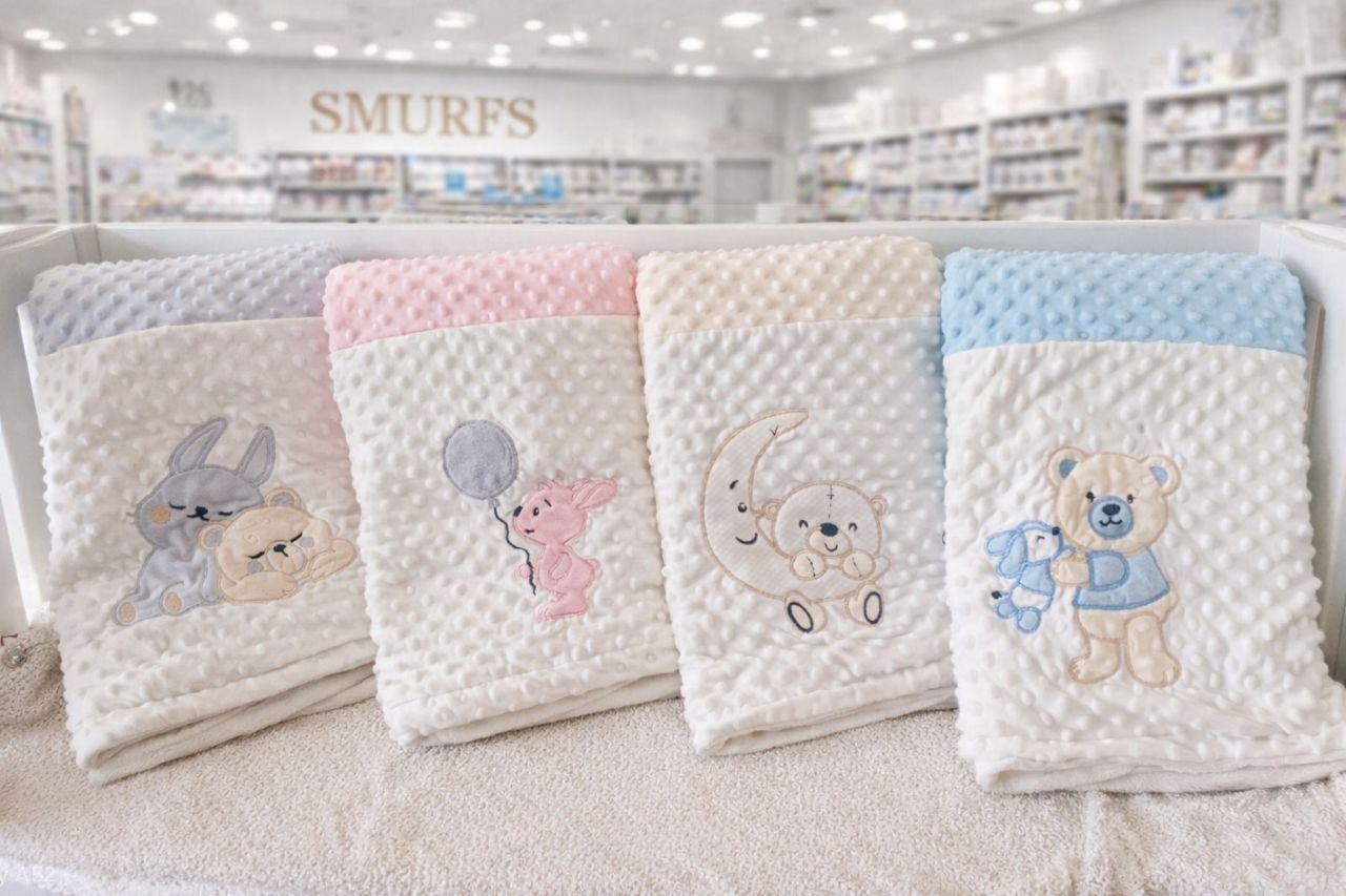 • بطانية السنافر حفر مطبوع طبقتين سادة تركي 90*120.