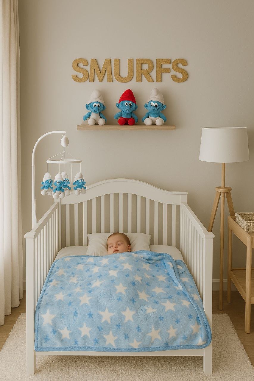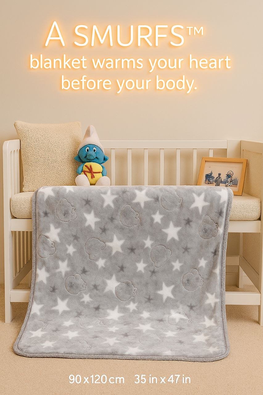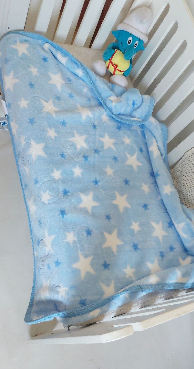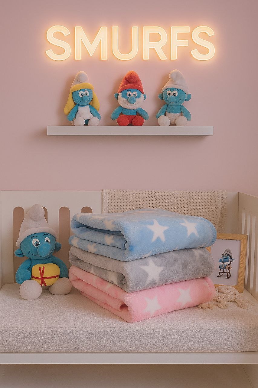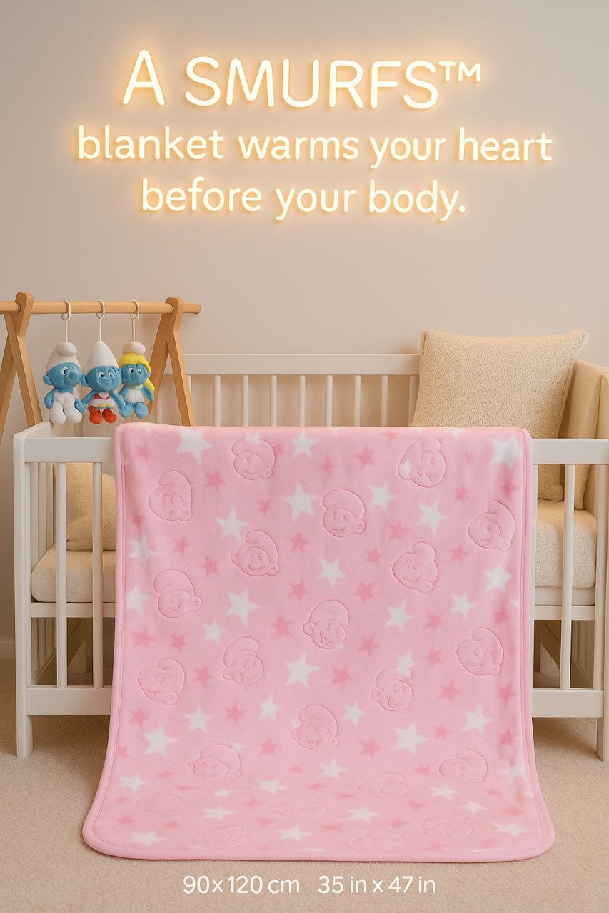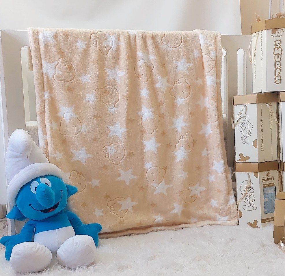• بطانية السنافر حفر مطبوع طبقتين سادة تركي 90*120.