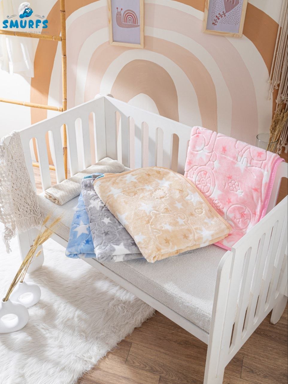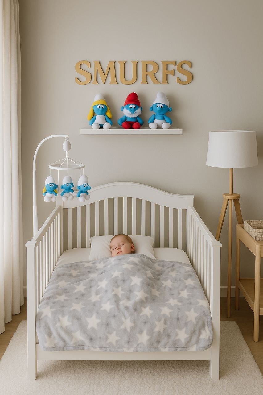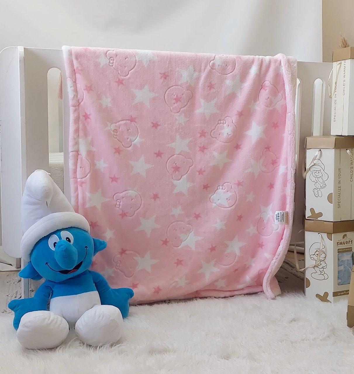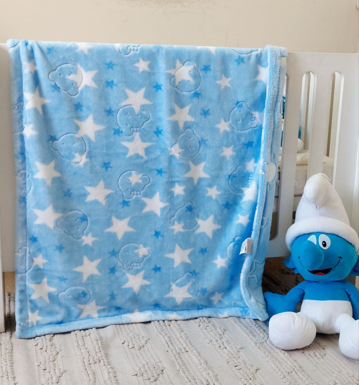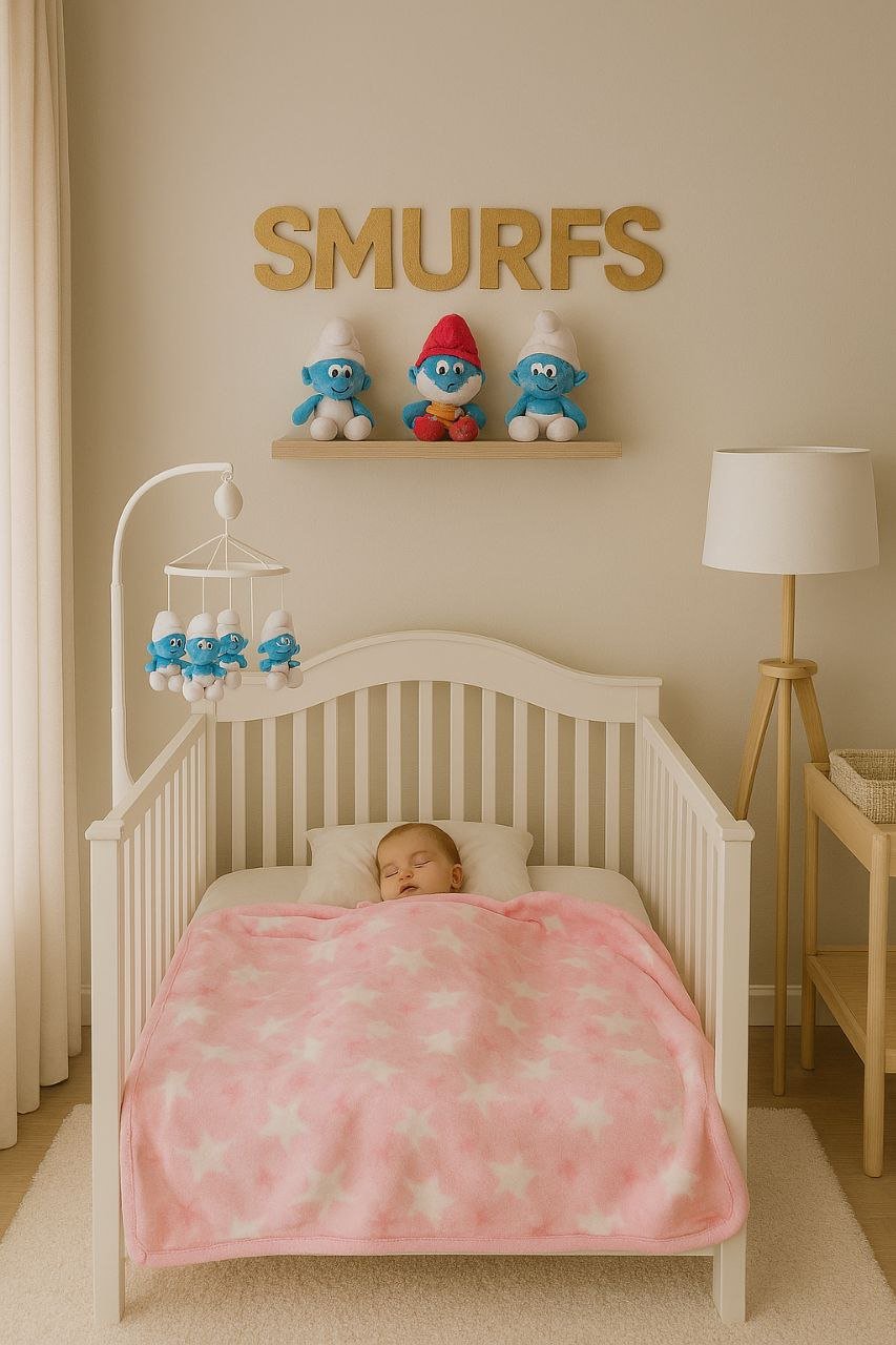 • بطانية السنافر حفر مطبوع طبقتين سادة تركي 90*120.