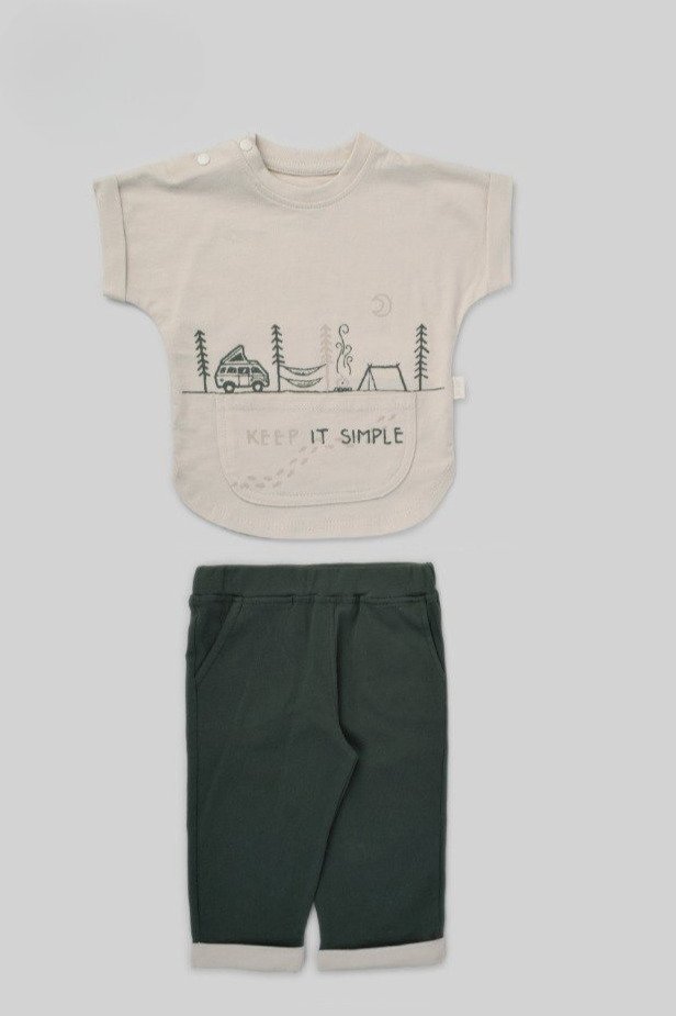 – طقم بيجامة مريح نص كم من مزيج القطن عالي الجودة (تي شيرت وبنطلون) – الخامة : (100% قطن)