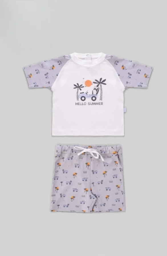 – طقم بيجامة مريح نص كم من مزيج القطن عالي الجودة (تي شيرت وشورت) – الخامة : (100% قطن)