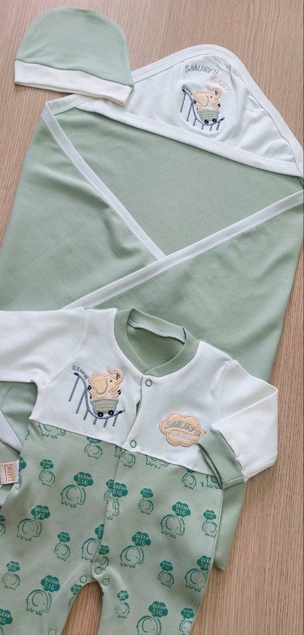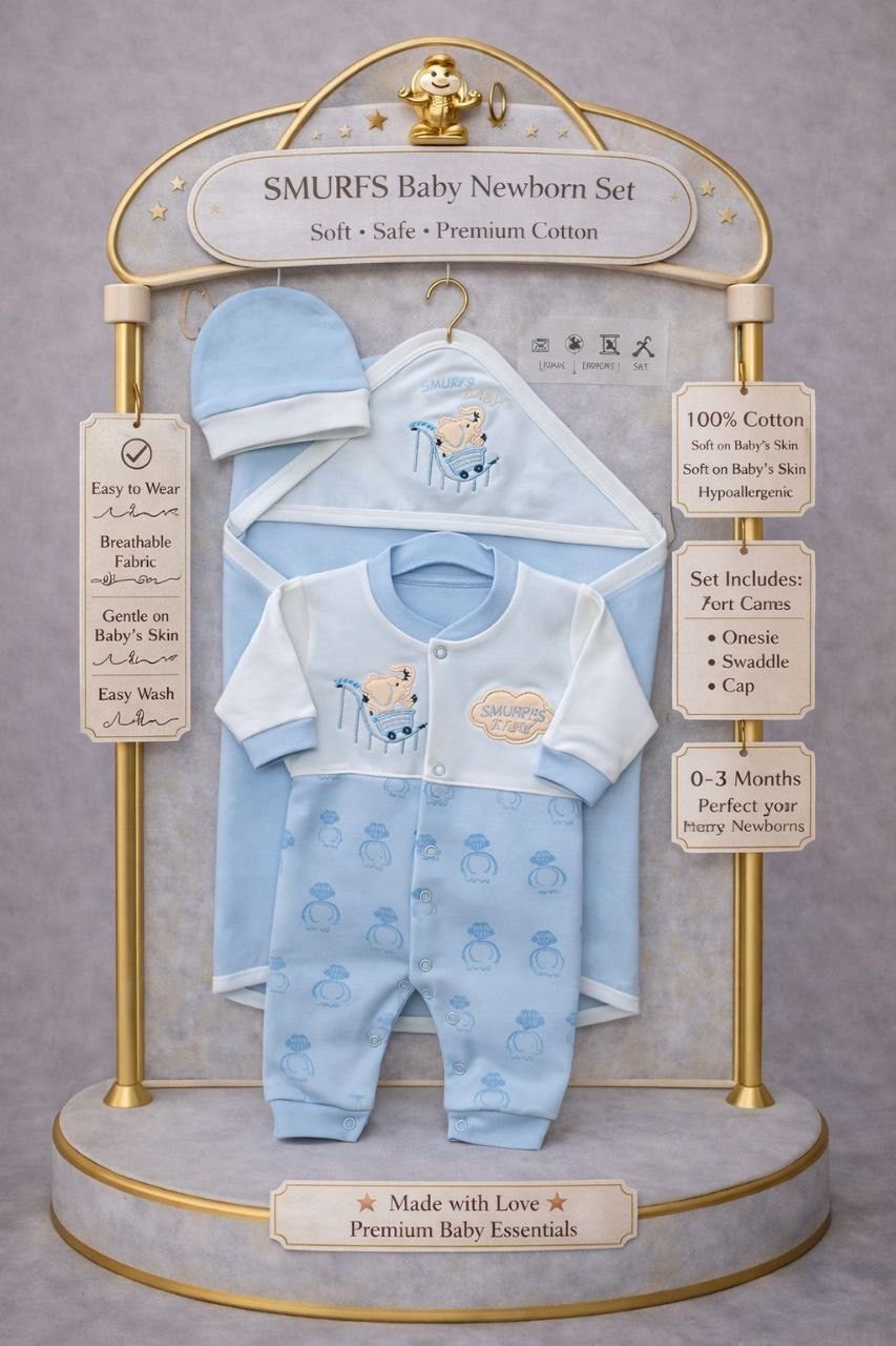 • سيت بيبي ٣ قطع حديثي الولادة-سنافر