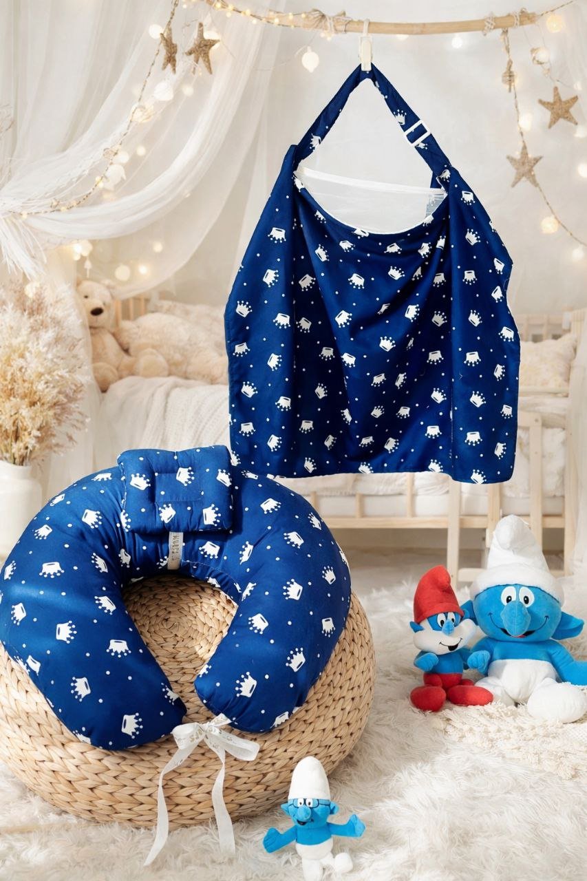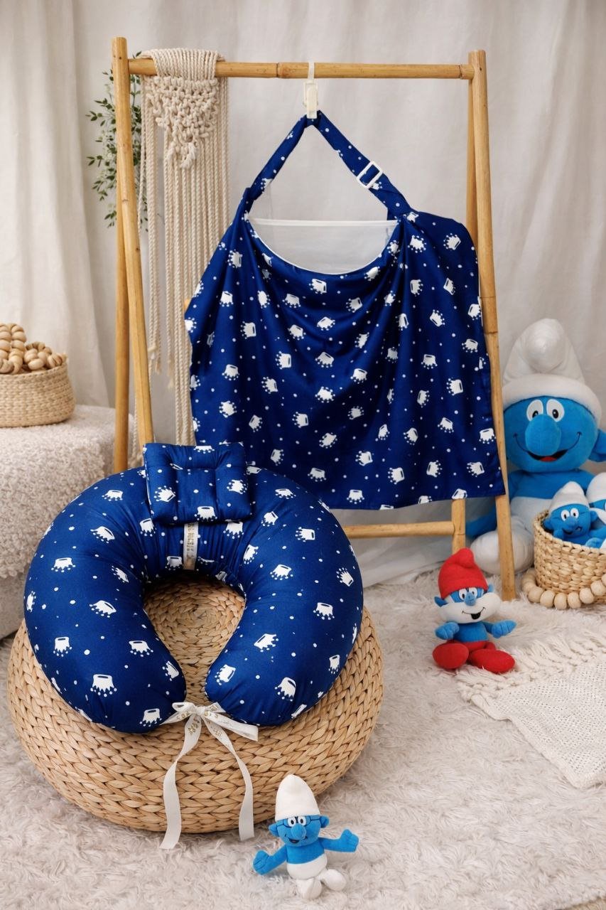سيت مخدة الرضاعة و ساتر الرضاعة قطن ناعم – السنافر