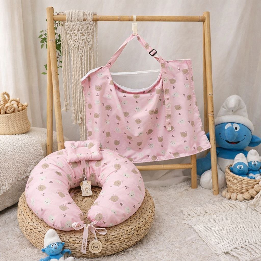 • سيت مخدة الرضاعة وساتر الرضاعة قطن ناعم من السنافر