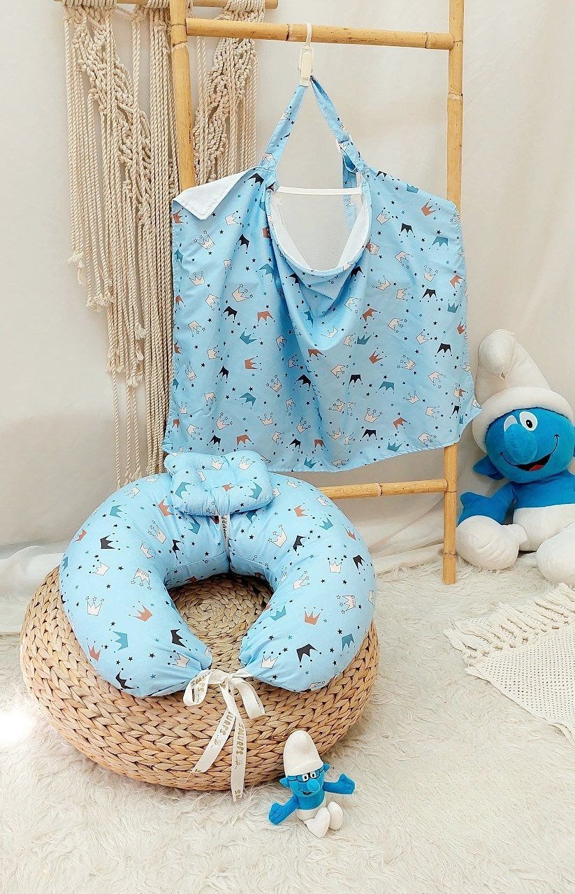 سيت مخدة الرضاعة و ساتر الرضاعة قطن ناعم – السنافر
