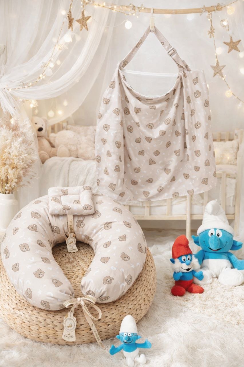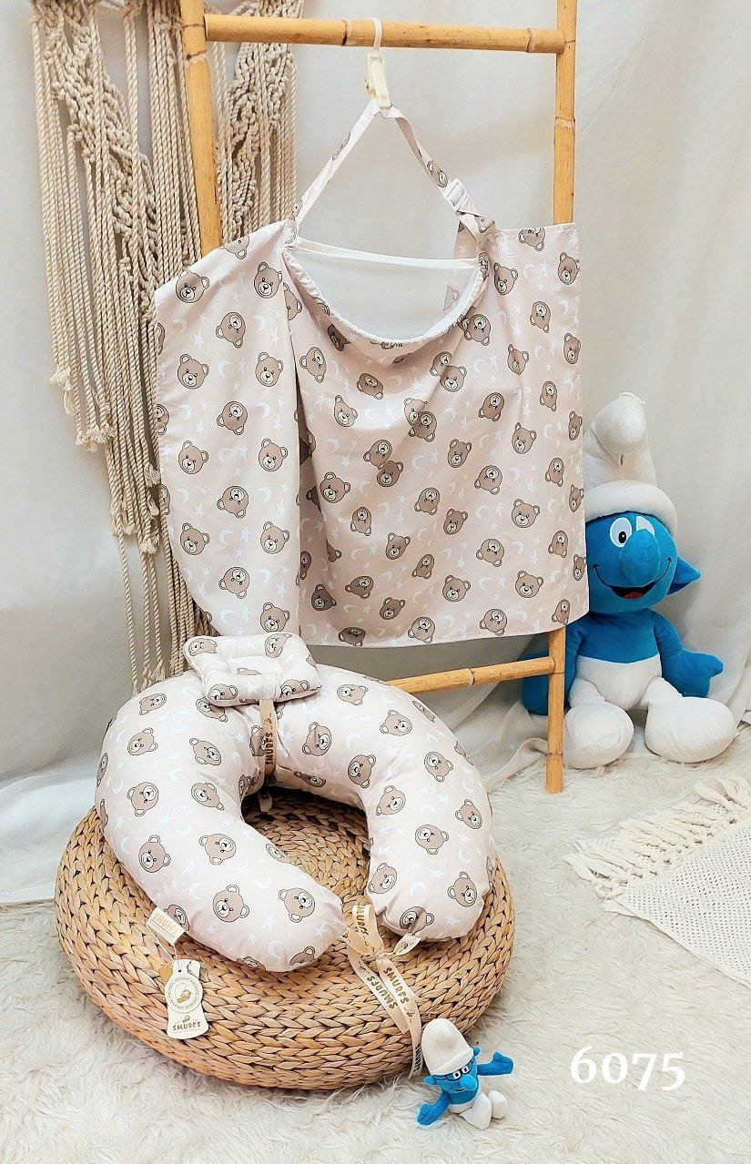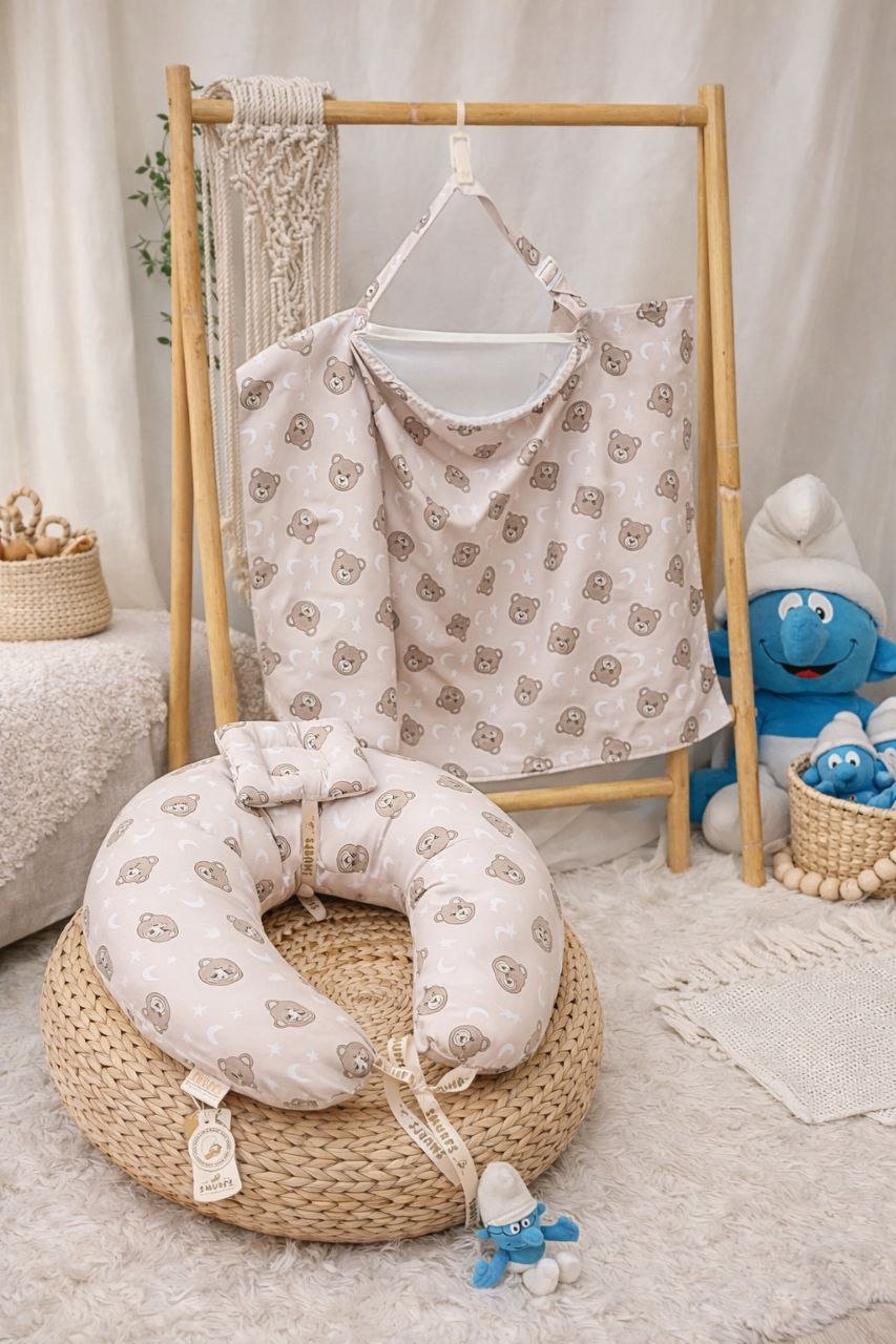 سيت مخدة الرضاعة و ساتر الرضاعة قطن ناعم – السنافر