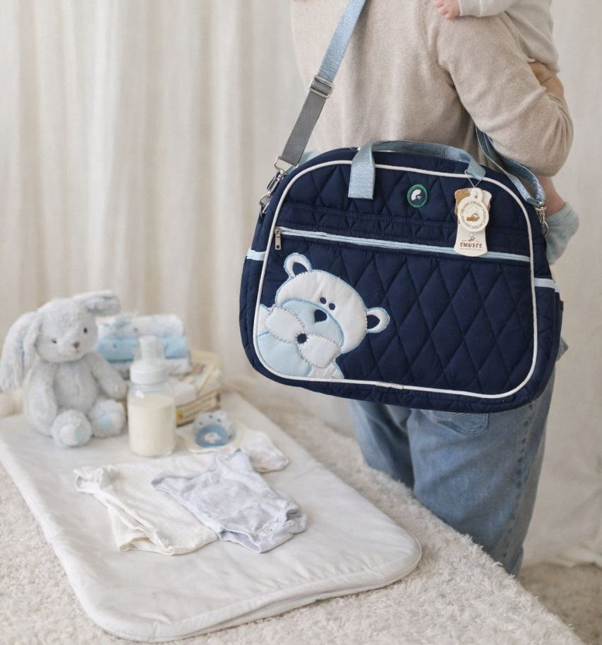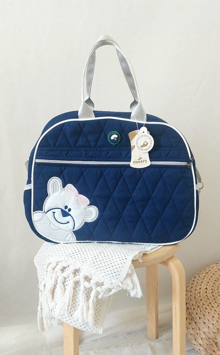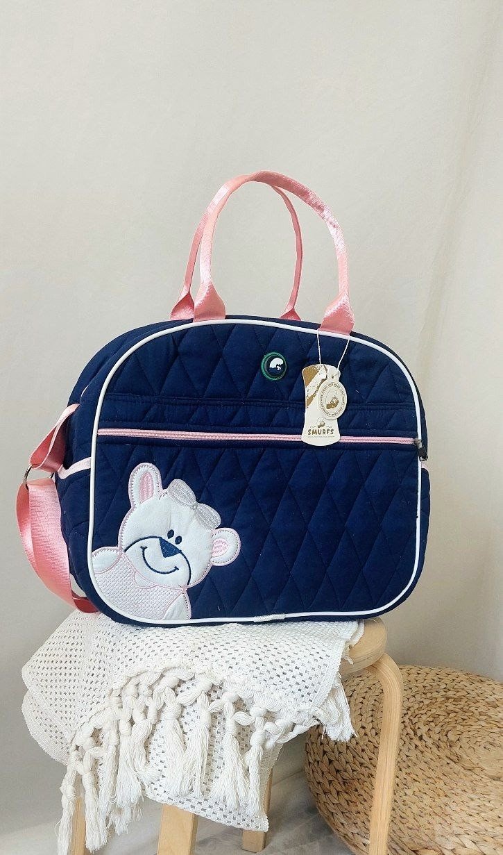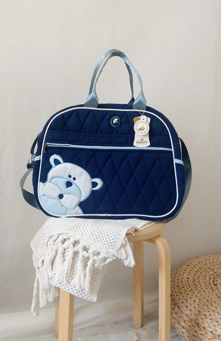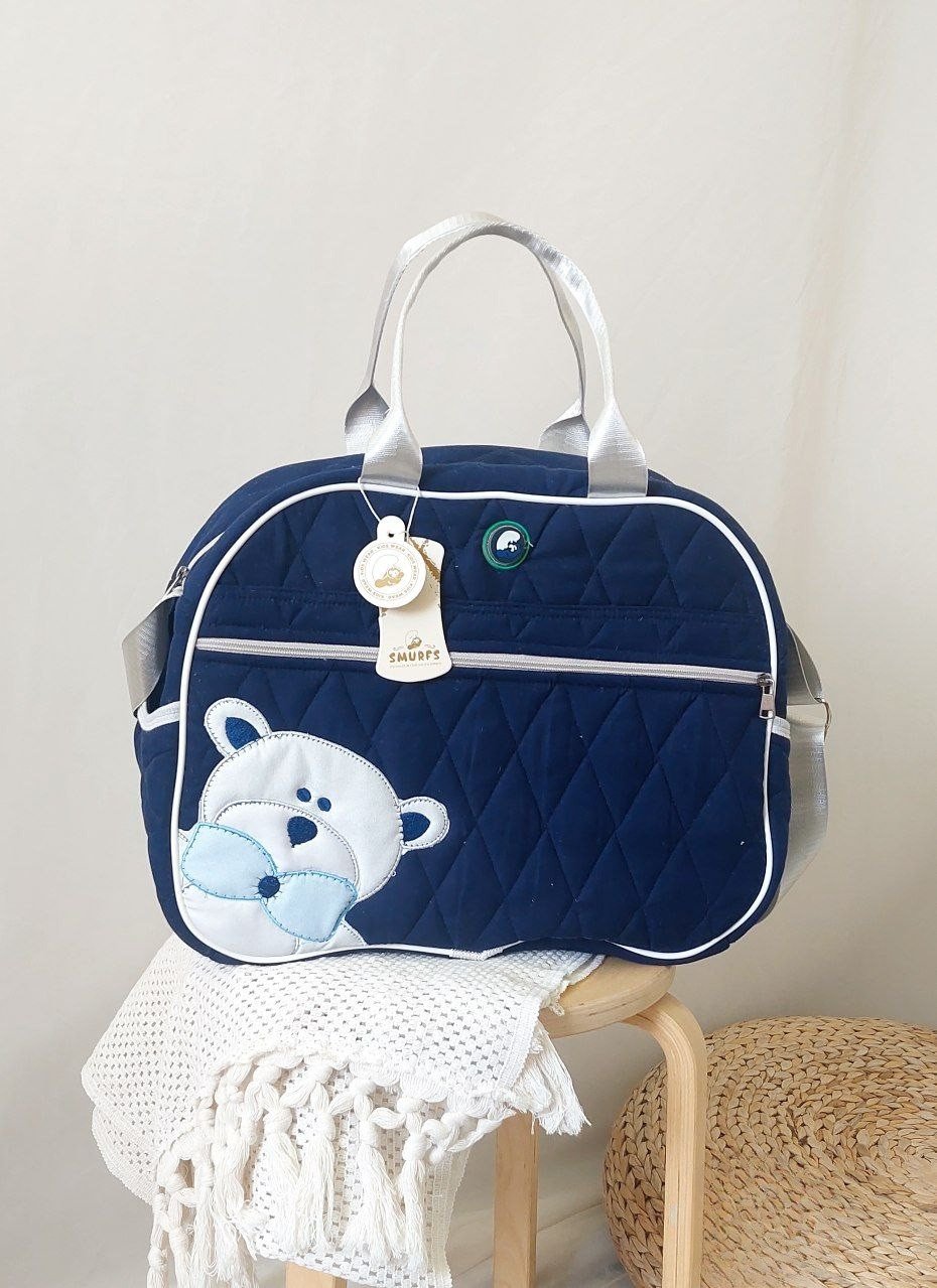 • شنطه السنافر شولدر تطريز بخامة قوية ومساحة كبيرة مع جيوب كبيرة لتنظيم مستلزمات البيبي